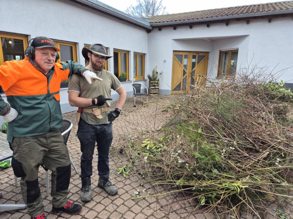 Am Samstag, den 28. Februar 2026, packten 20 fleißige Hände kräftig an! Bei bestem Wetter schnitt das Team Sträucher, Hecken und Rosen, entfernte Unkraut aus Beeten und füllte damit einen ganzen Anhänger.