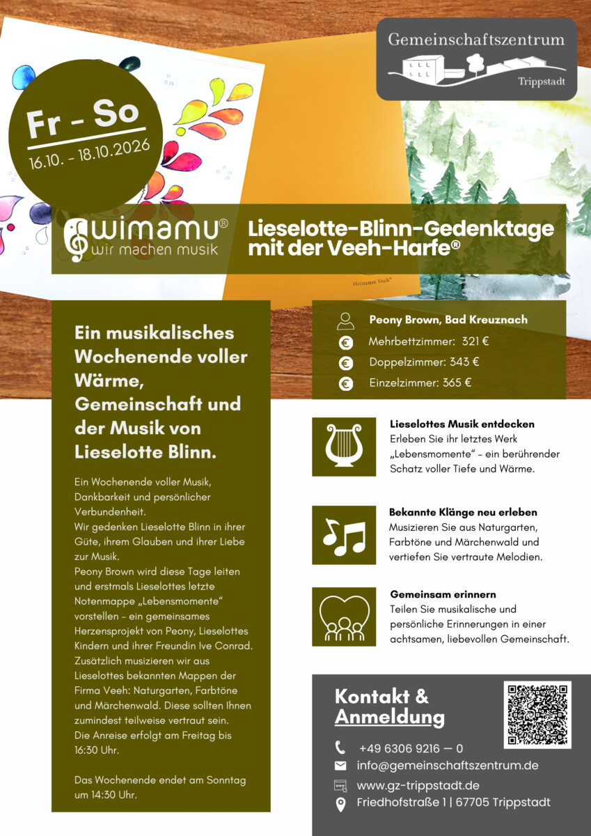 Zum 2. Todestag von Lieselotte Blinn lädt das Gemeinschaftszentrum Trippstadt zu einem Gedenk-Wochenende ein.